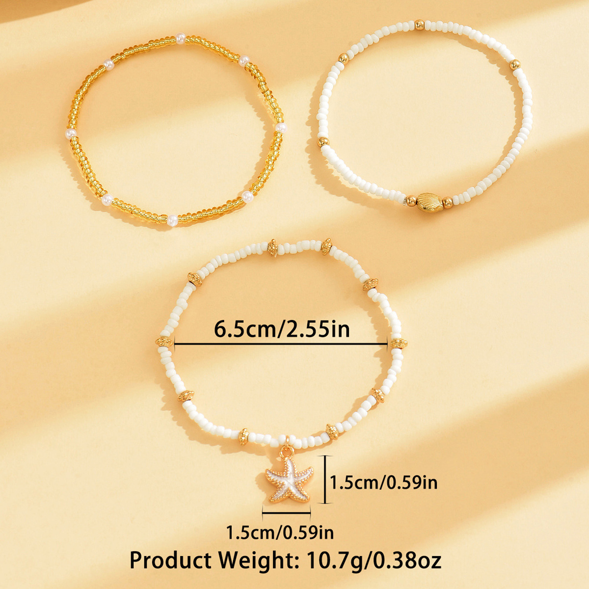 | 🌊Inspired by the bohemian spirit and ocean waves, this anklet set features three delicate white-beaded designs with natural pearls, a hand-painted shell charm, and a starfish pendant, evoking carefree coastal vibes.