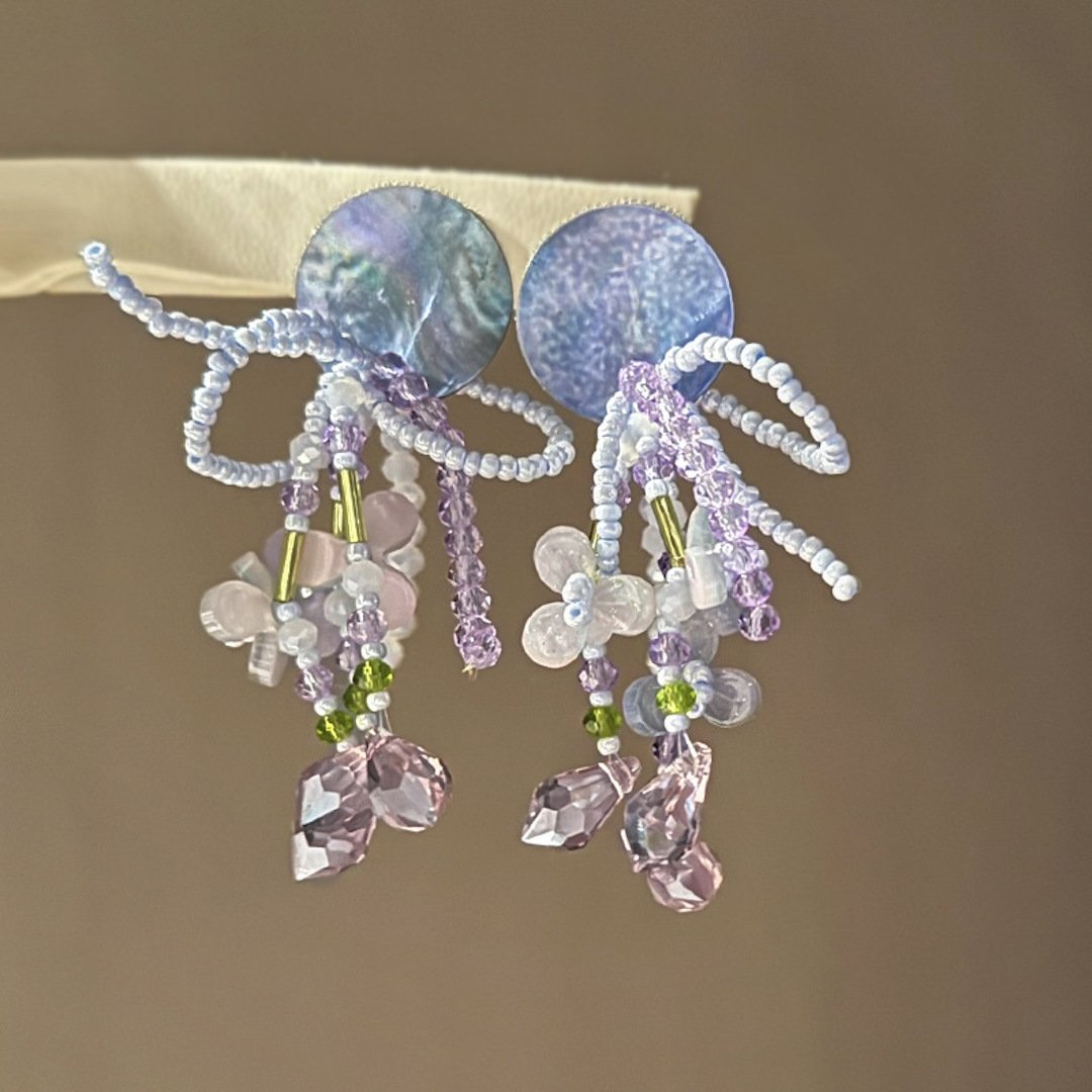 Drawing inspiration from the leisurely atmosphere of the southern French coast and the natural textures of shells, this piece combines an asymmetrical shell design with transparent amethyst stones, presenting a casual and poetic scene of strolling on the beach and finding treasures. The delicate French style and beachy vibe are skillfully blended.