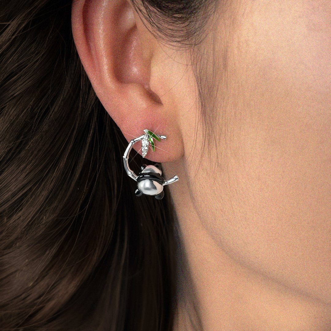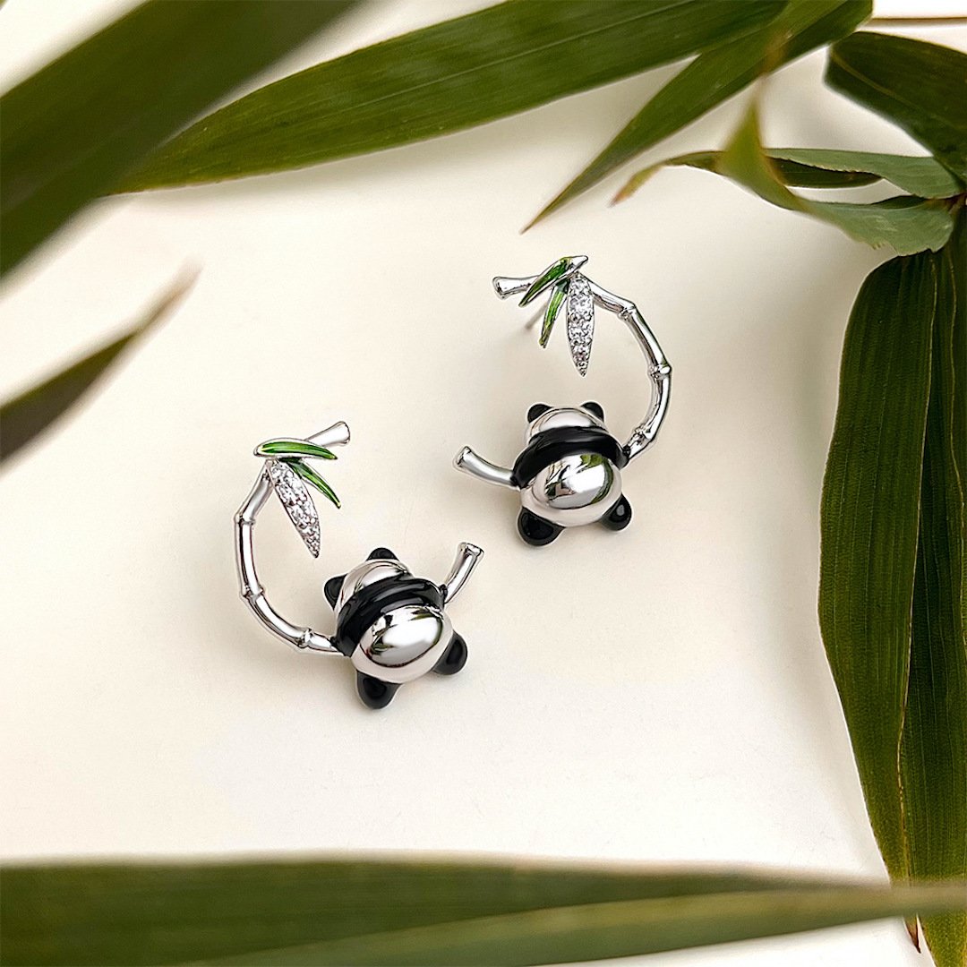 Wearing experience: The single earring combines the panda and the bamboo joints