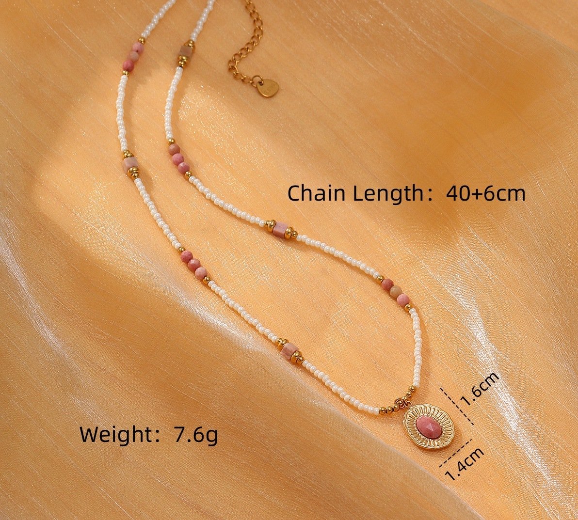 Sunflower red jasper necklace for women, colorful crystal beads, versatile and high-end look